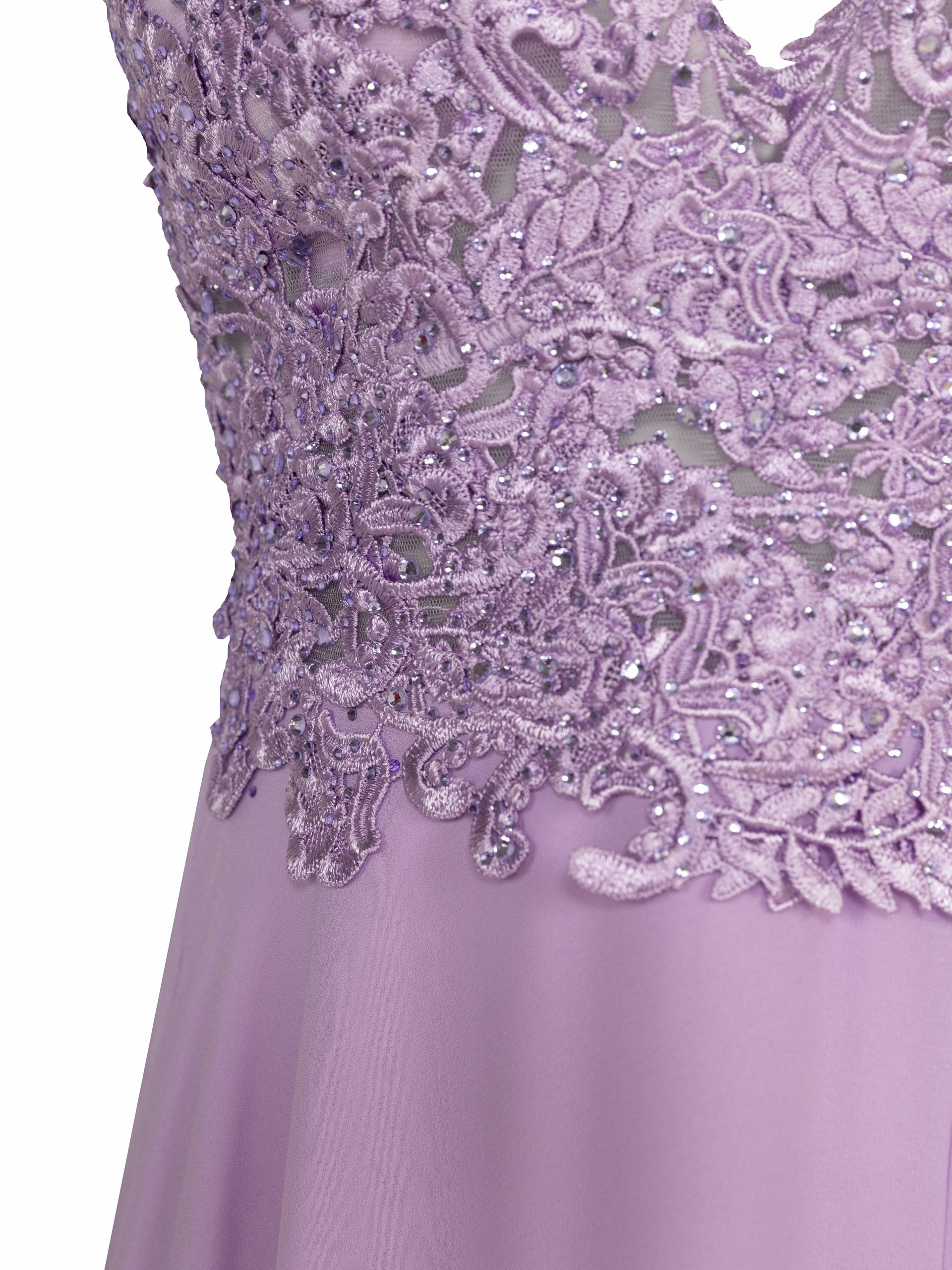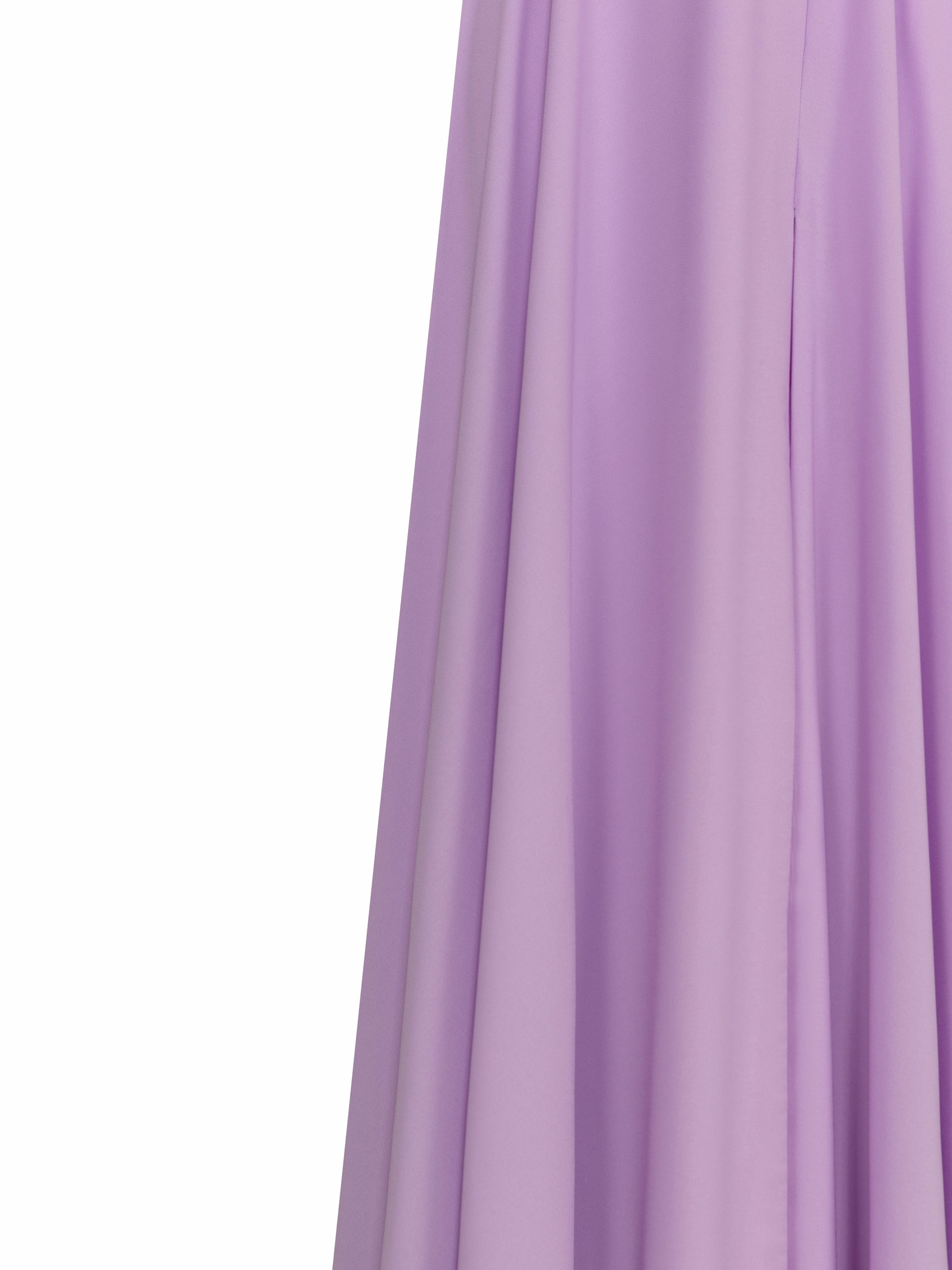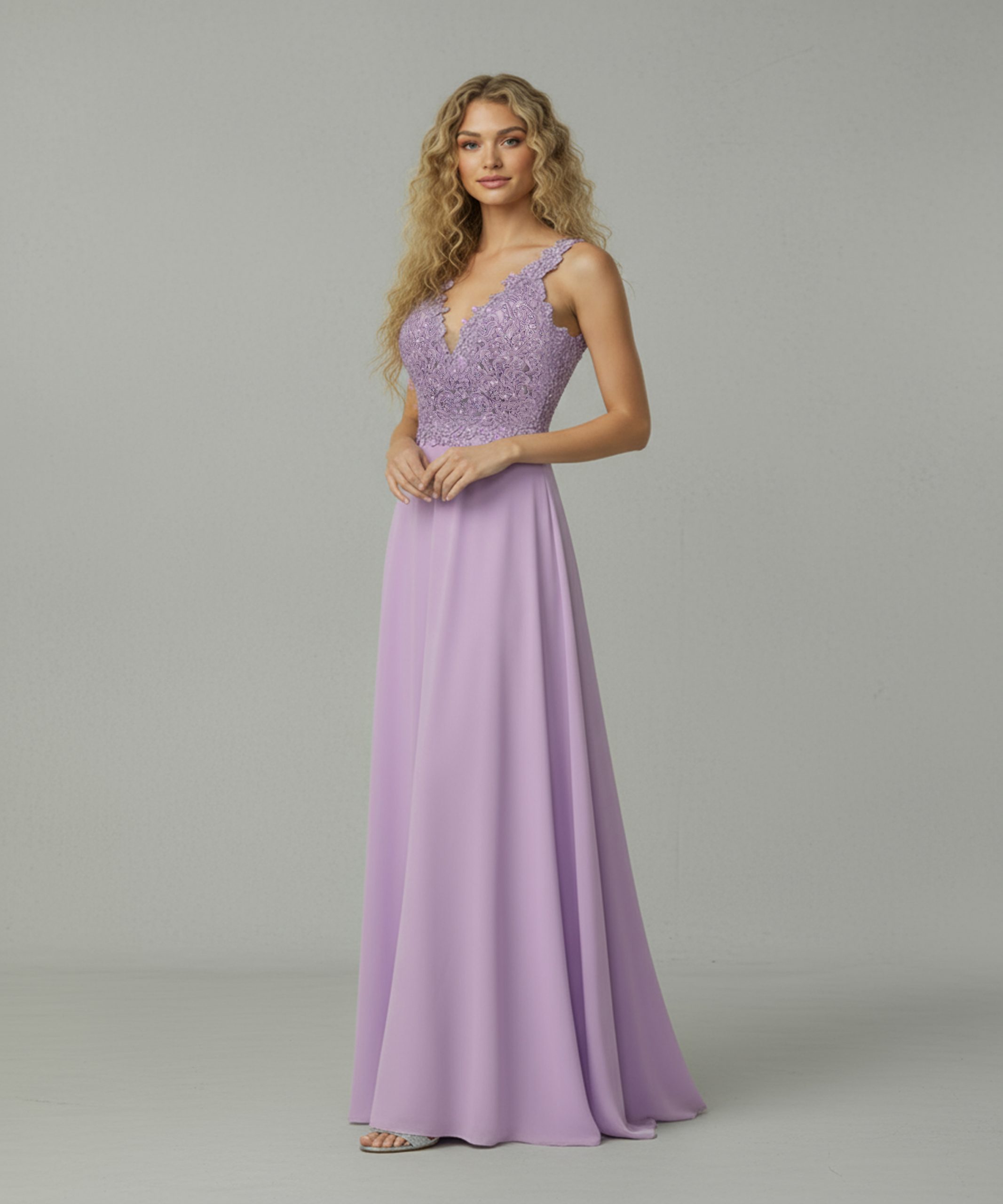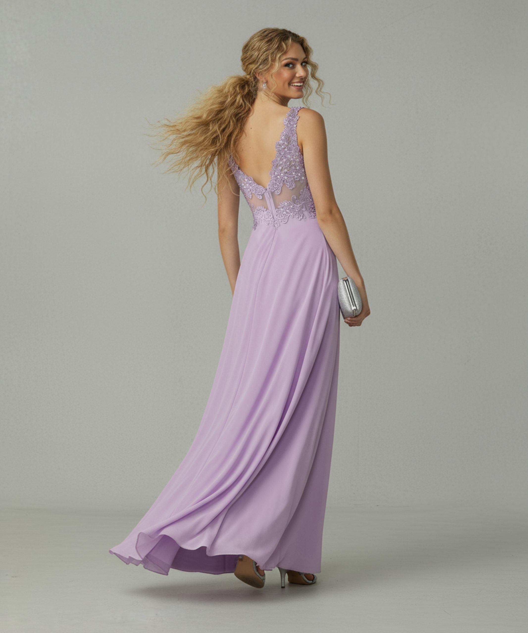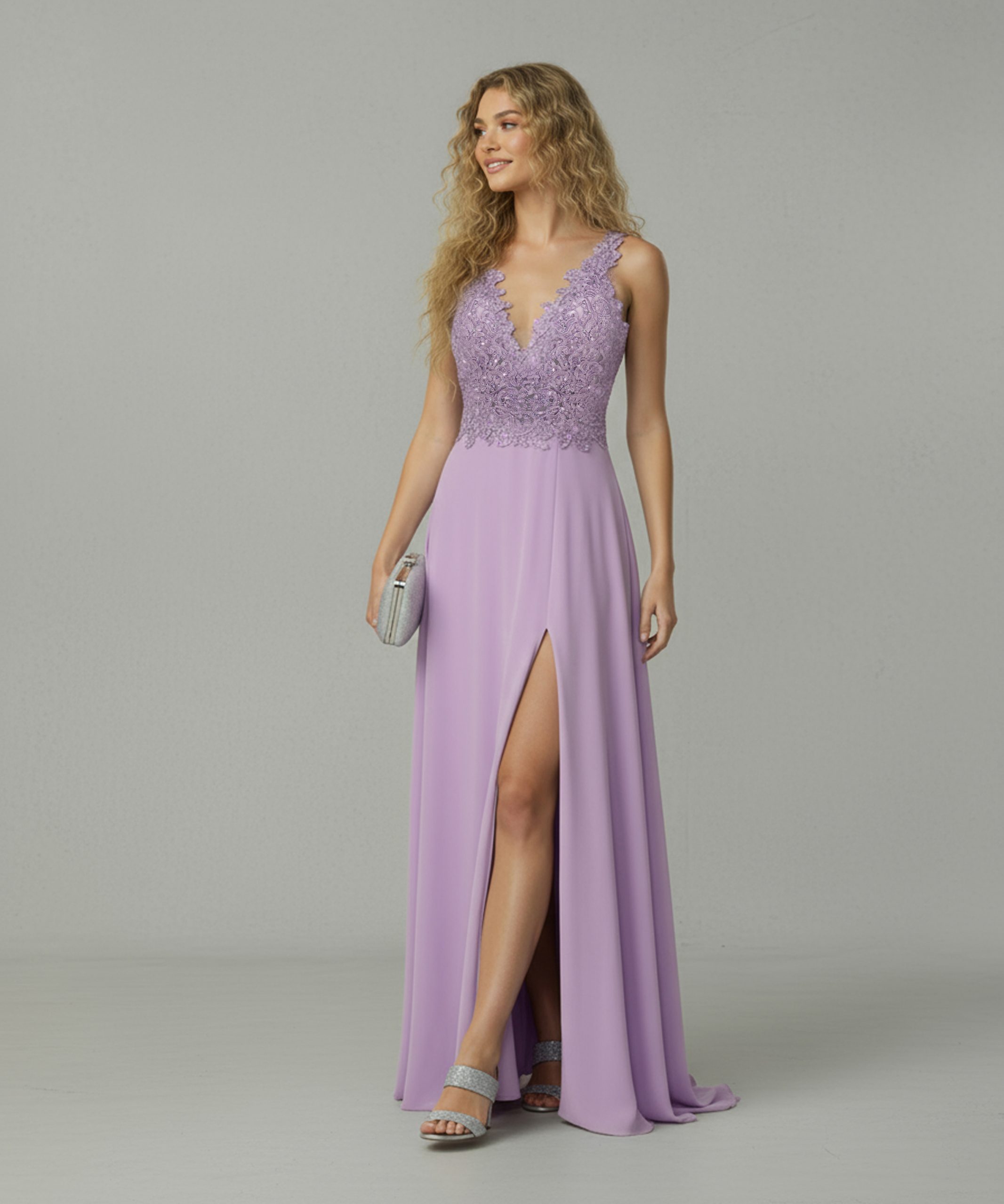 Espectacular y precioso vestido de alta costura con pecho en pedrería y encaje. Su composición silueta y tono malva lo hacen súmamente elegante dulce y rompedor .